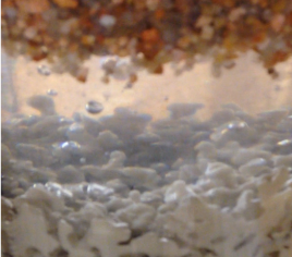 Image on the left: suspension flow through transparent soils. |