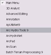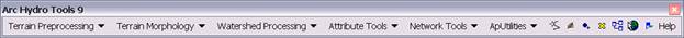 Make sure the Arc Hydro tools are installed on the system. The ArcHydro installation file may be obtained from ESRI ArcHydro Online data support system: http://support.esri.com/index.cfm?fa=downloads.dataModels.filteredGateway&dmid=15. Click on the latest ArcHydro Tools version under Downloads. You will need to install both the ApFramework and ArcHydro setup files.