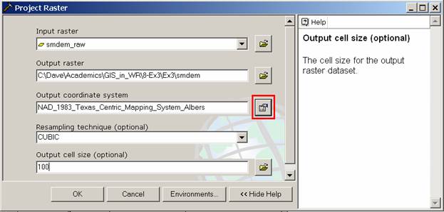 to invoke the tool. After the process is complete, the projected DEM, smdem, is