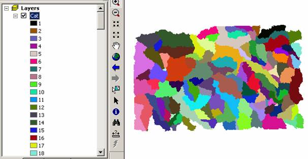 Press OK. The points are added to SubwatershedPoint, and the subwatersheds are added to Subwatershed. The delineated subwatersheds are shown below.