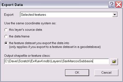 and USGSGage feature classes stored in the Hydrography feature dataset and the Subbasin