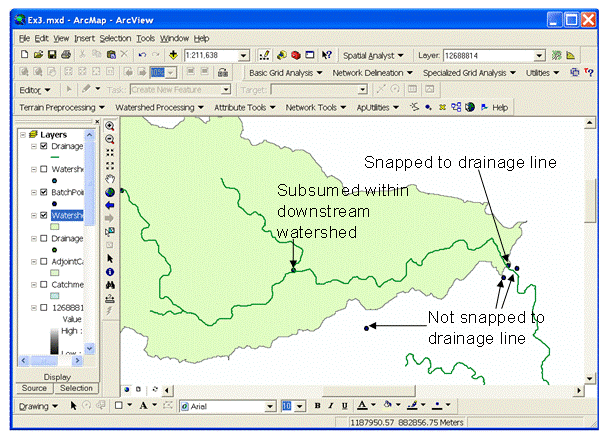 Discussion of differences between the drainage area you get from ArcGIS and the