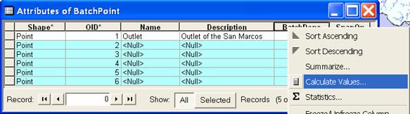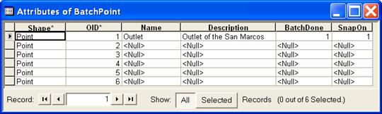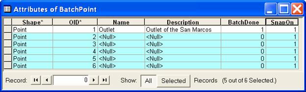 Open the BatchPoint attribute table and use the field calculator to set BatchDone = 0. Select Watershed Processing | Batch Subwatershed Delineation.