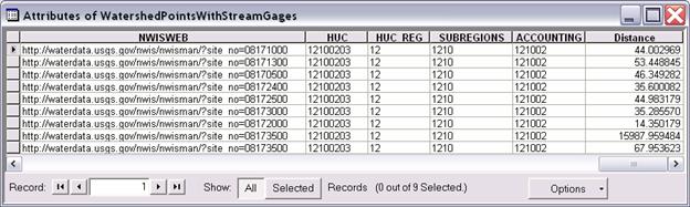 We would now like to associate watershed attributes, such as drainage area from the Watershed feature class with these stream gages.