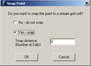 Press OK to snap the point to a stream grid cell (this form