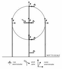 Figures: The LIST wind turbine and primary inflow instrumentation on towers upwind of the turbine |