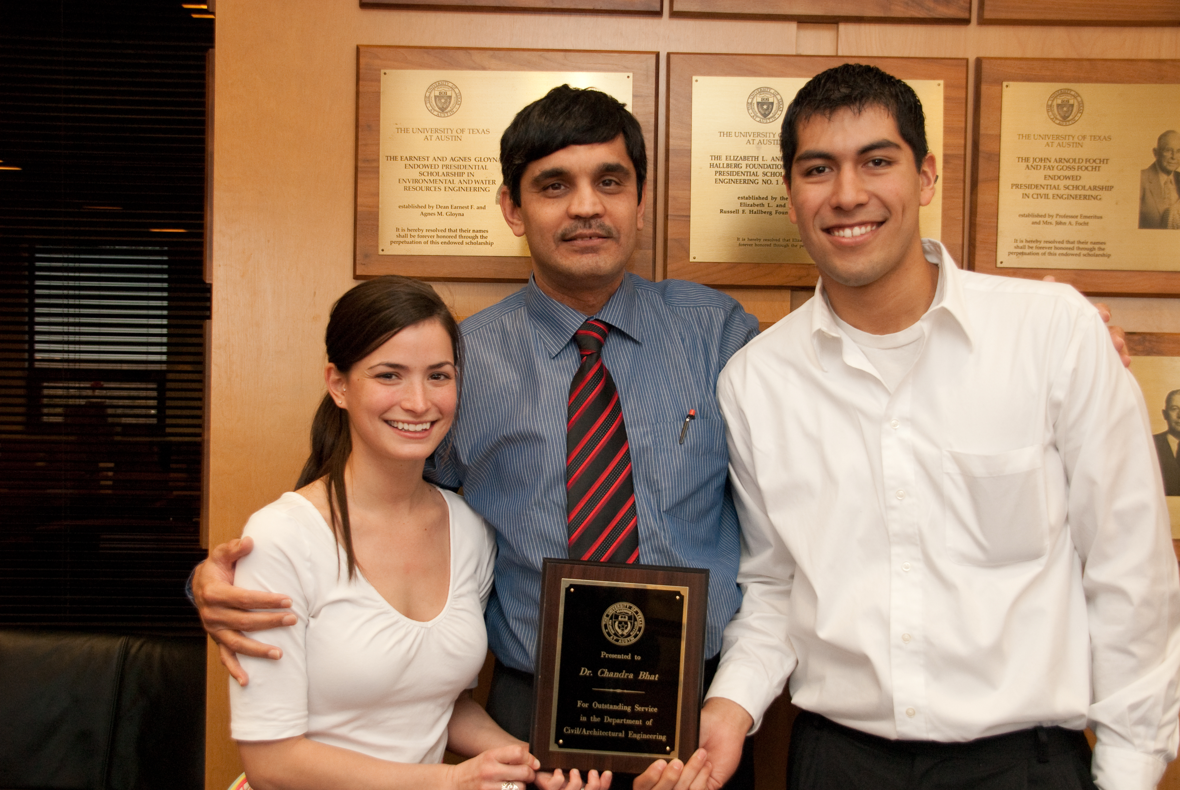 Dr. Chandra Bhat was selected by the Student Engineering Council to receive the Most Outstanding Faculty Award for Civil Engineering: