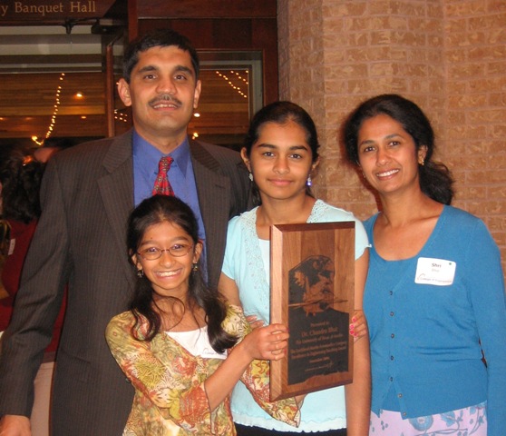 Dr. Bhat and his lovely ladies: daughters Aarti and Prerna, and wife Shri.