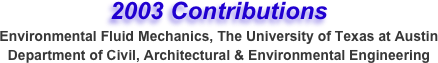 Furnans, J.E. and B.R. Hodges (2003), “Dispersion and mixing processes in Texas coastal embayments,” Integrated Watershed Sciences Symposium, University of Texas at Austin, Environmental Science Institute, Nov. 12, 2003.