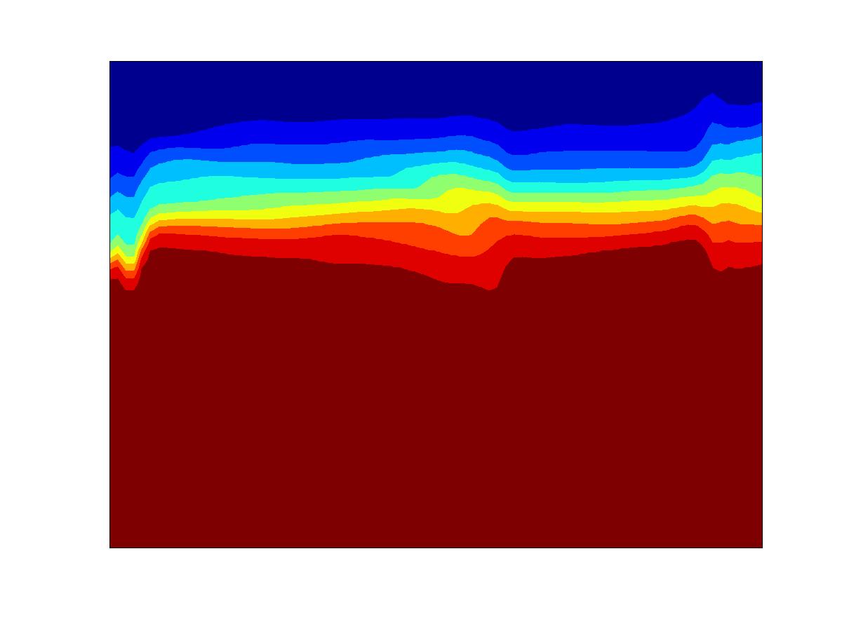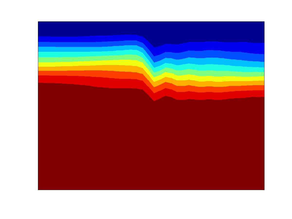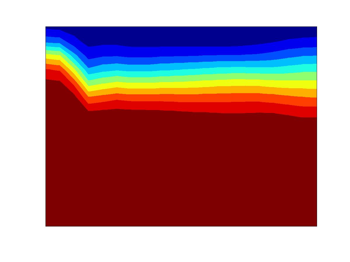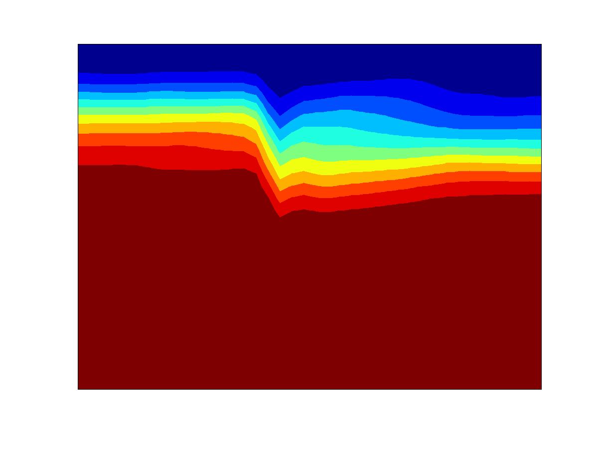 Hydrostatic model results for non-breaking internal wave For a similar set of pictures of a non-hydrostatic wave model <follow this link> For a similar set of pictures of a breaking wave <follow this link> For movies (6 at 500 mb each) matching the figures on this page <follow this link> |