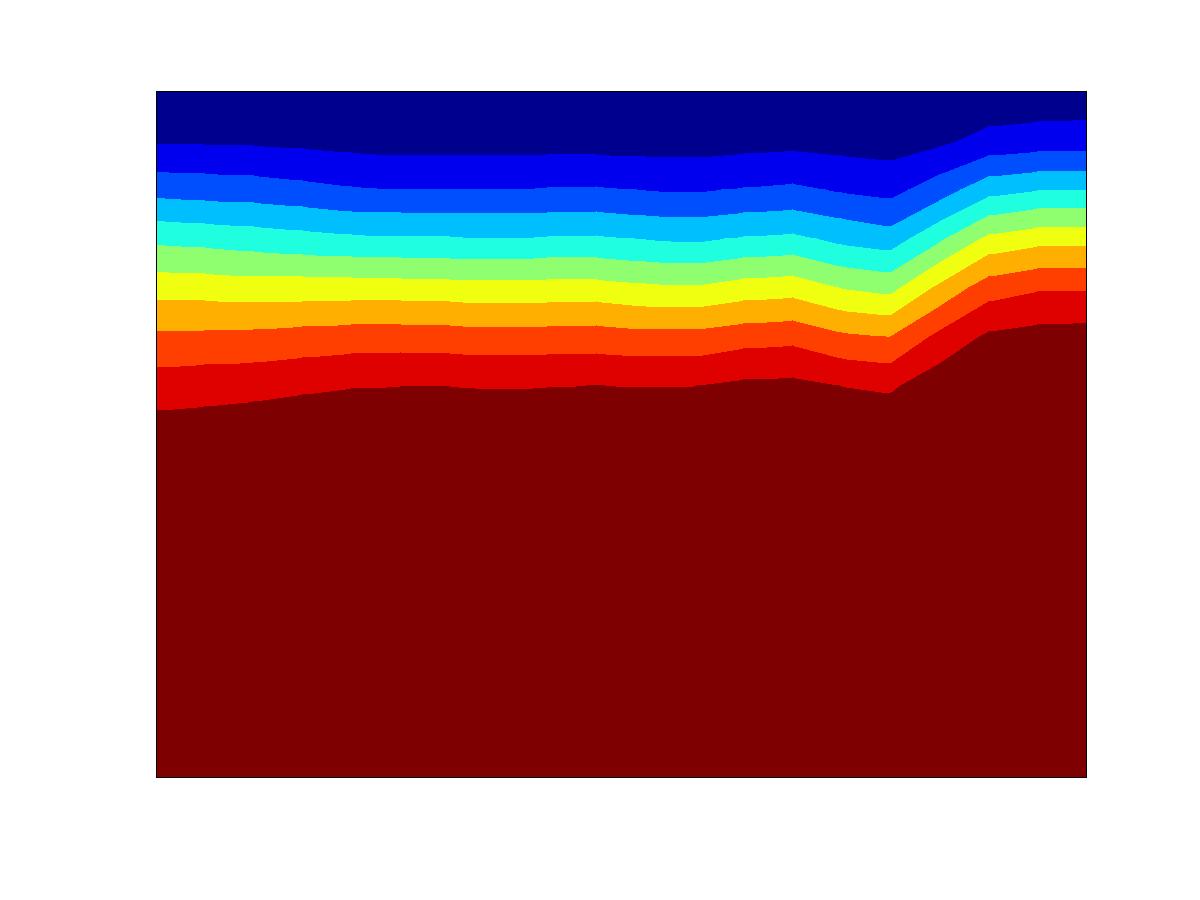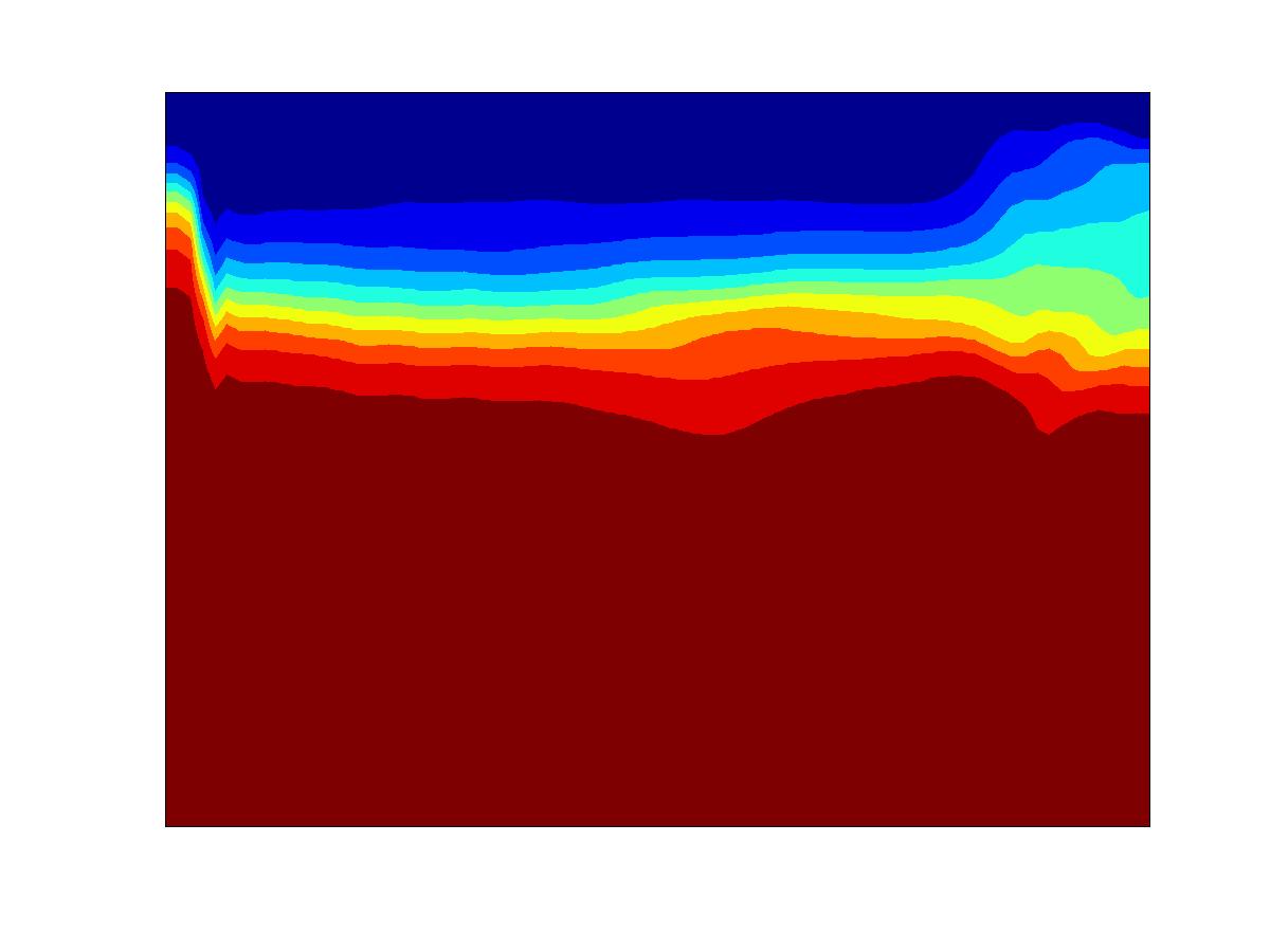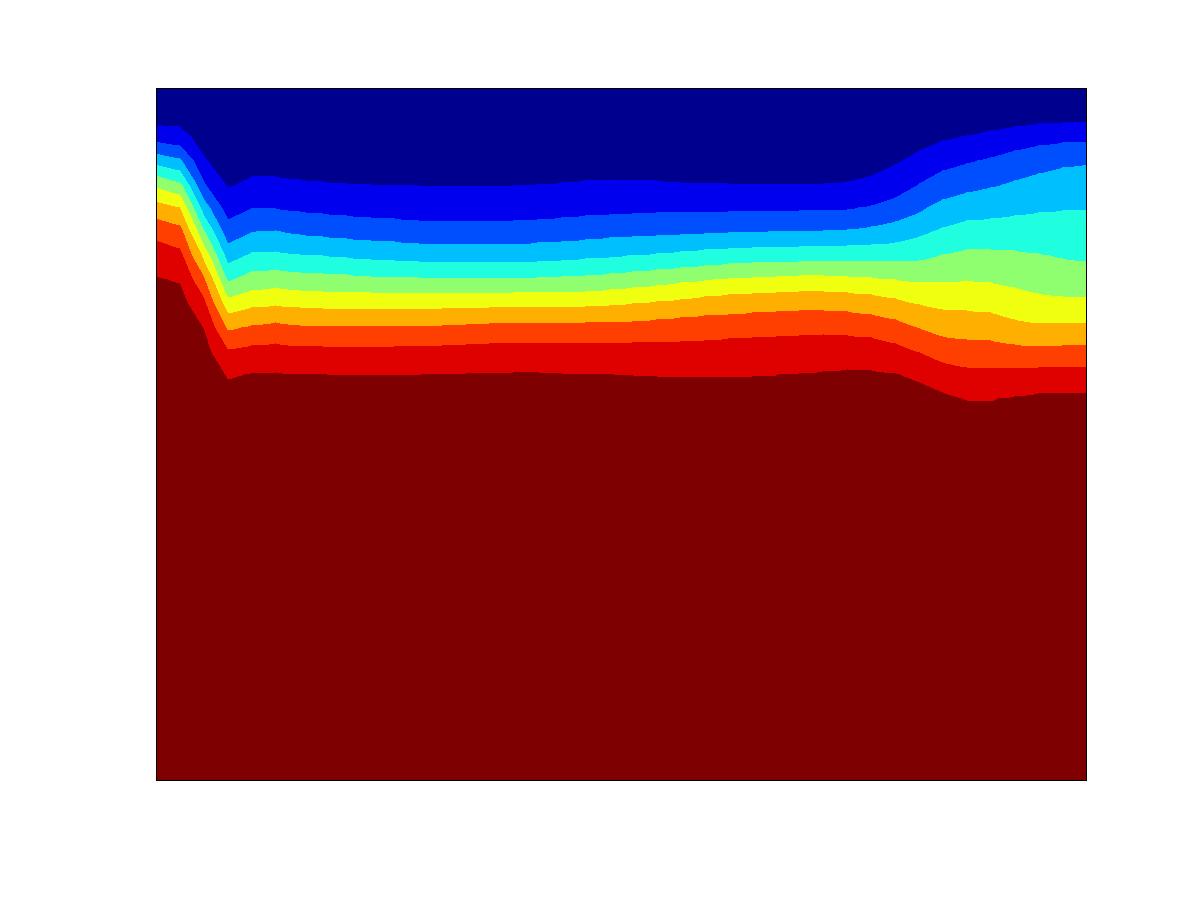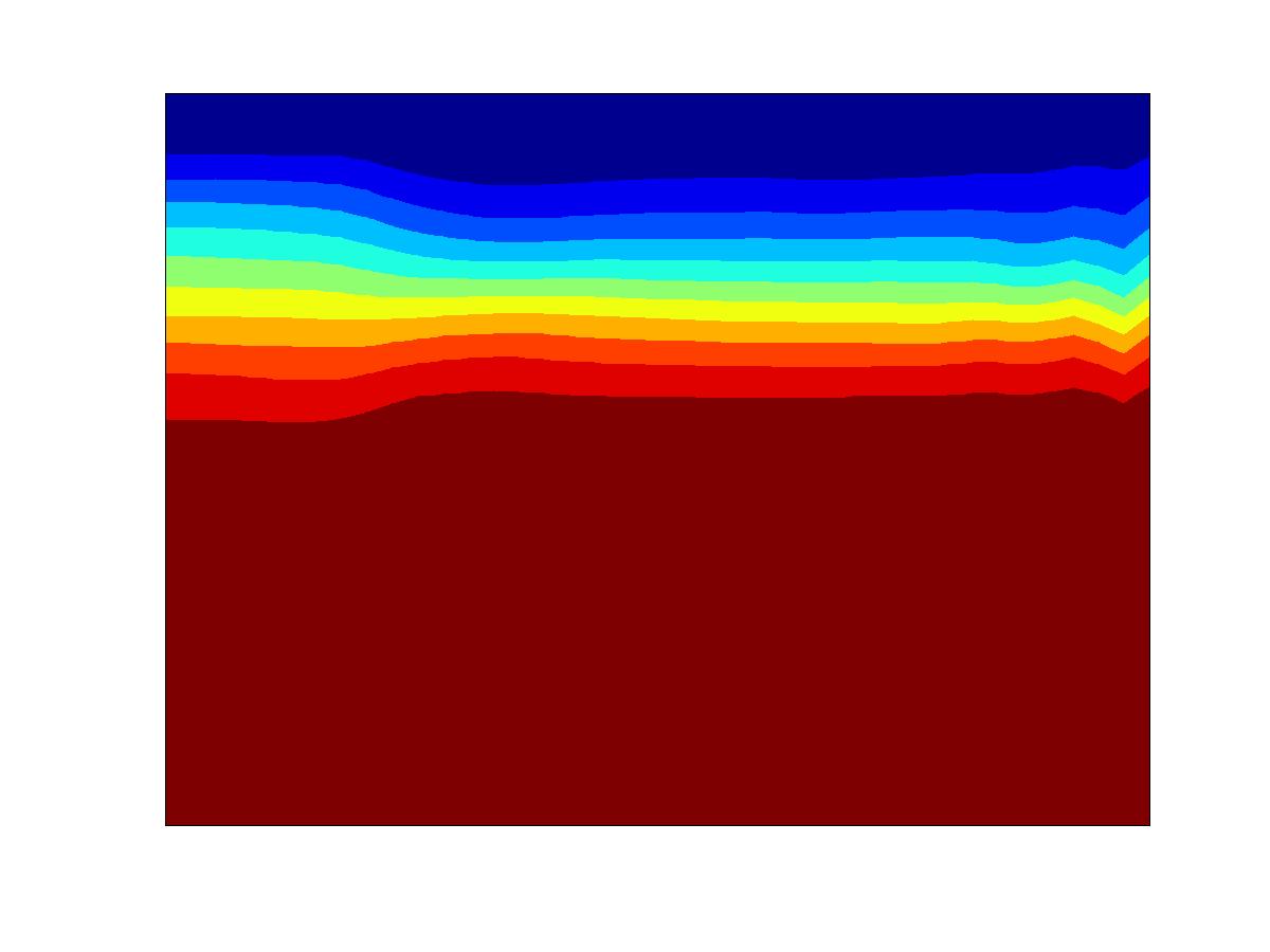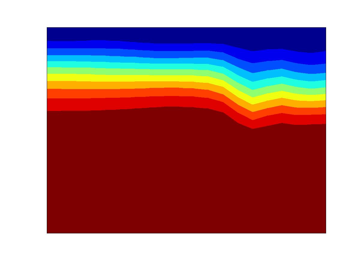 Hydrostatic model results for non-breaking internal wave For a similar set of pictures of a non-hydrostatic wave model <follow this link> For a similar set of pictures of a breaking wave <follow this link> For movies (6 at 500 mb each) matching the figures on this page <follow this link> |