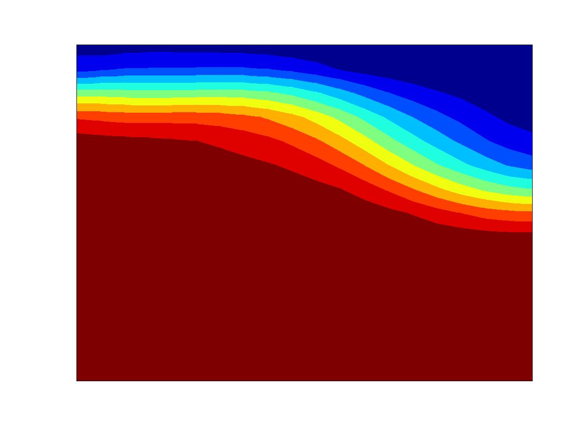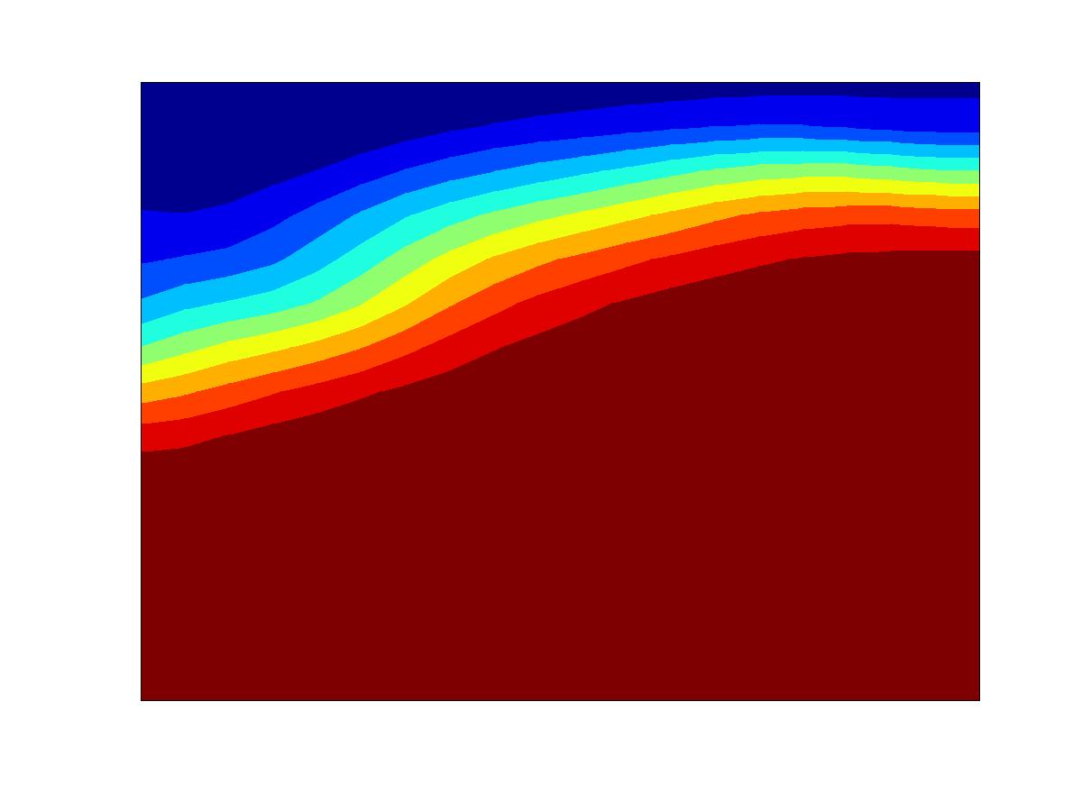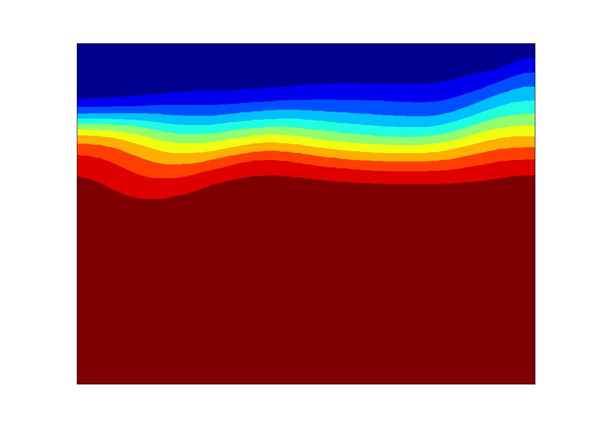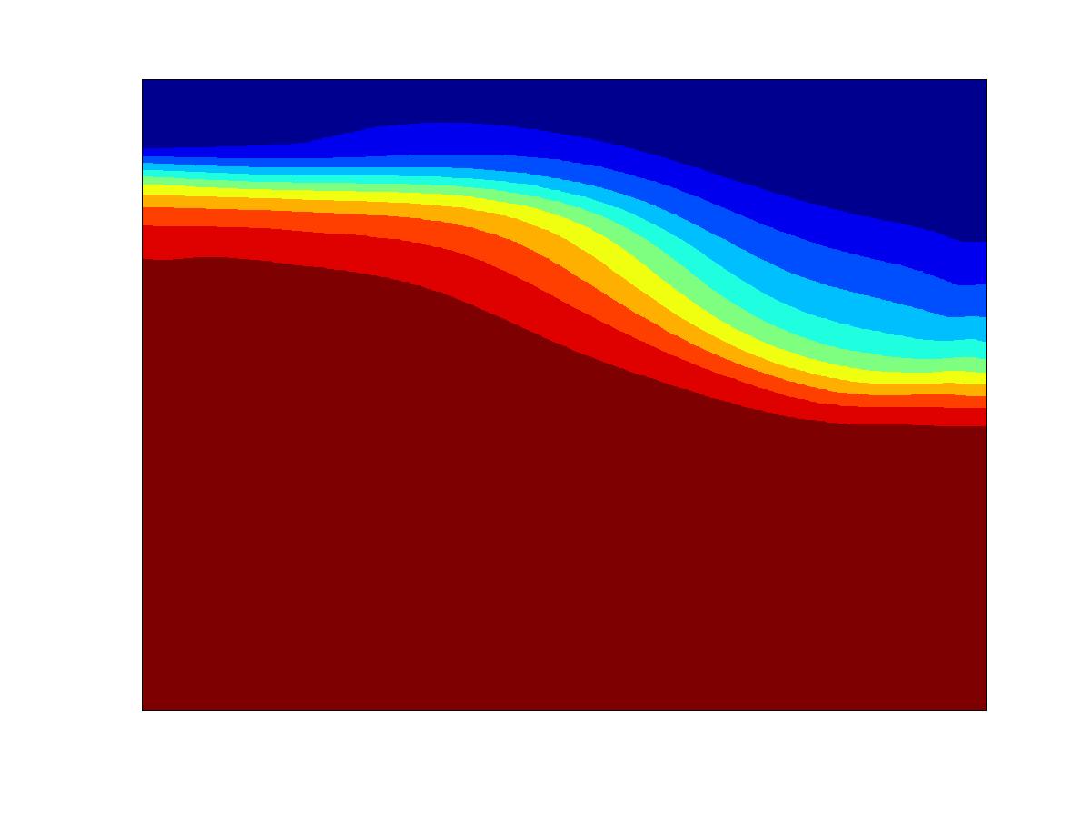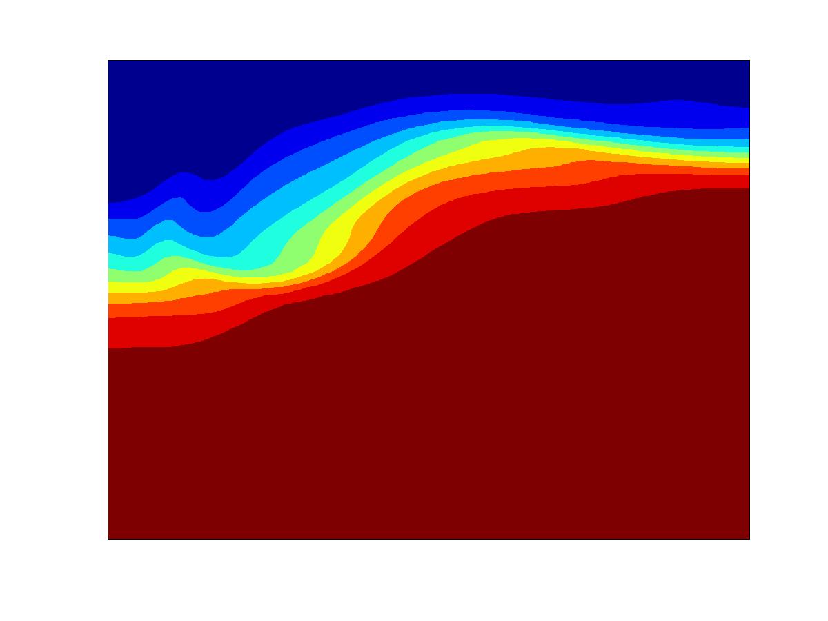 Non-hydrostatic model results for non-breaking internal wave For a similar set of pictures of a hydrostatic wave model <follow this link> For a similar set of pictures of a breaking wave <follow this link> For movies (6 at 500 mb each) matching the figures on this page <follow this link> |