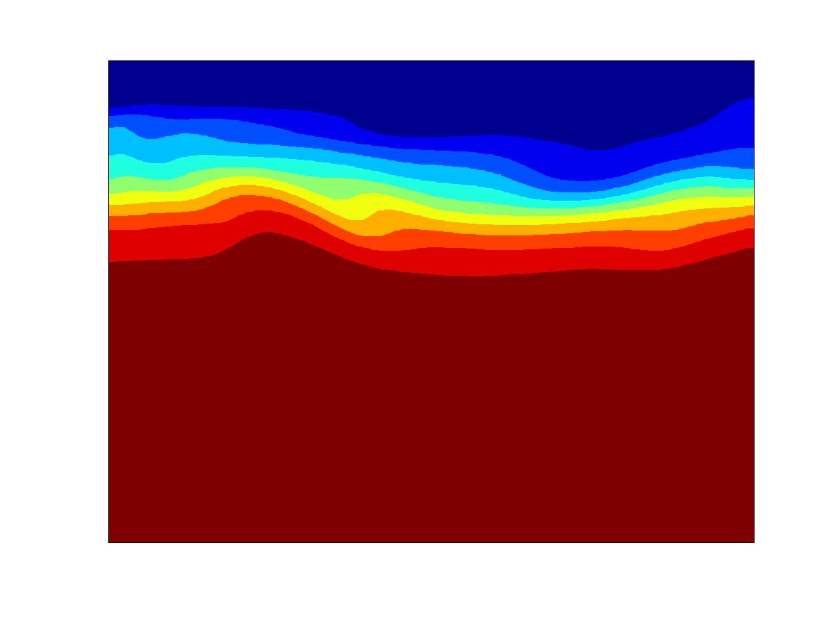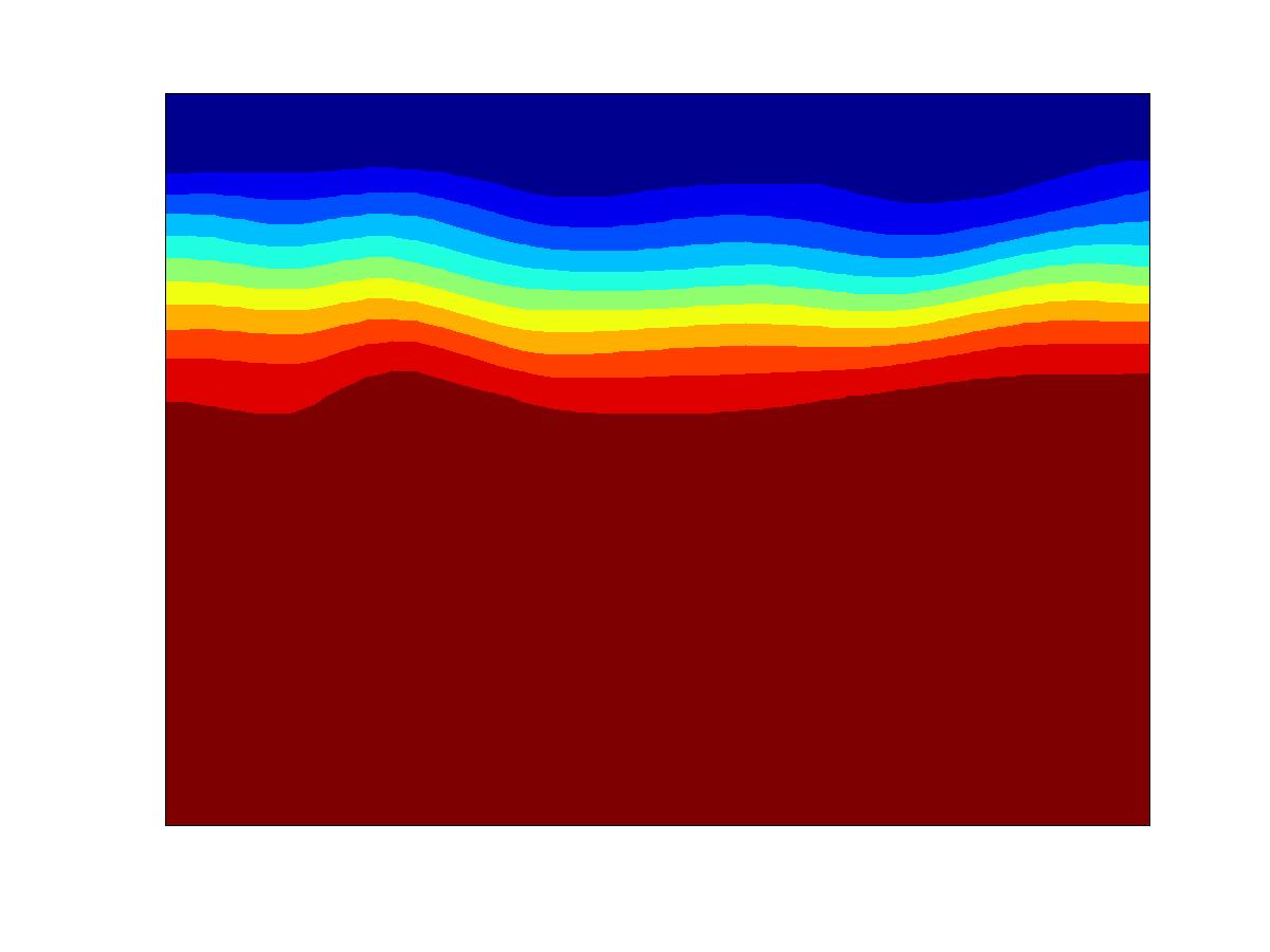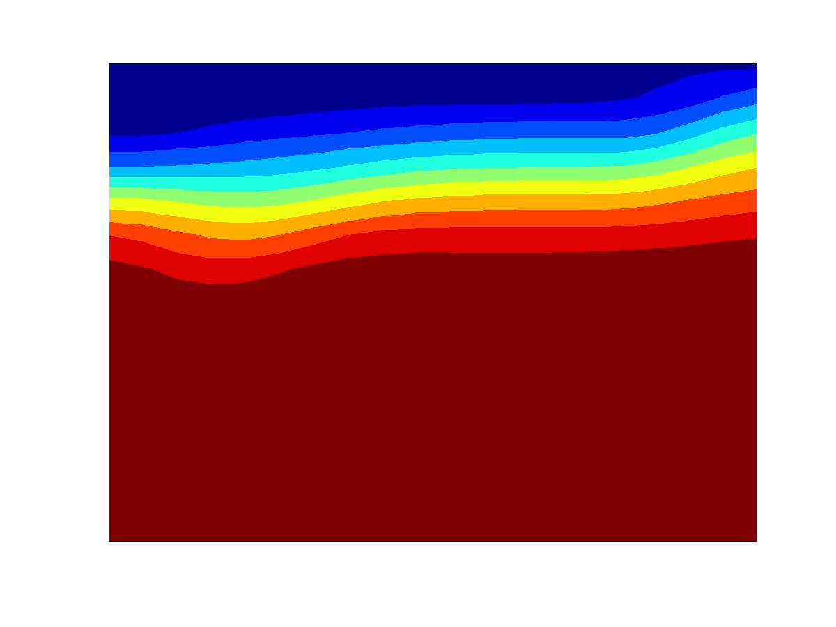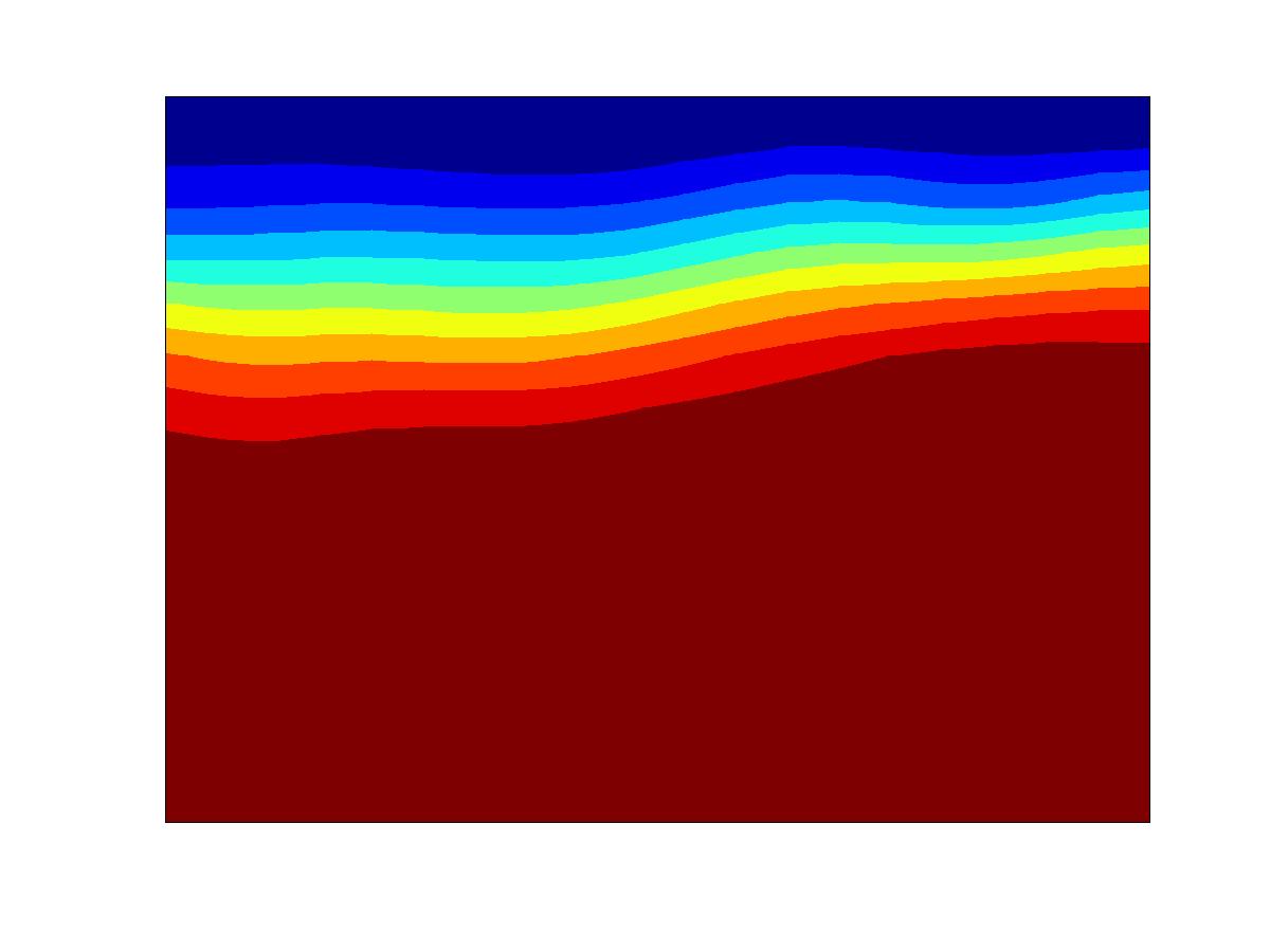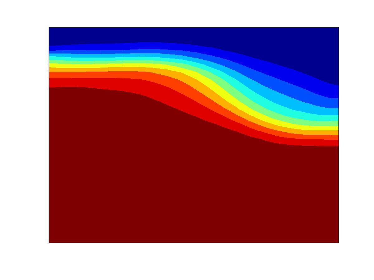 Non-hydrostatic model results for non-breaking internal wave For a similar set of pictures of a hydrostatic wave model <follow this link> For a similar set of pictures of a breaking wave <follow this link> For movies (6 at 500 mb each) matching the figures on this page <follow this link> |
