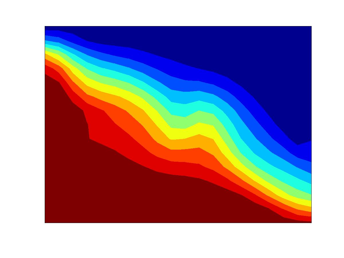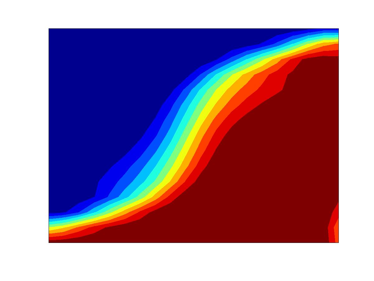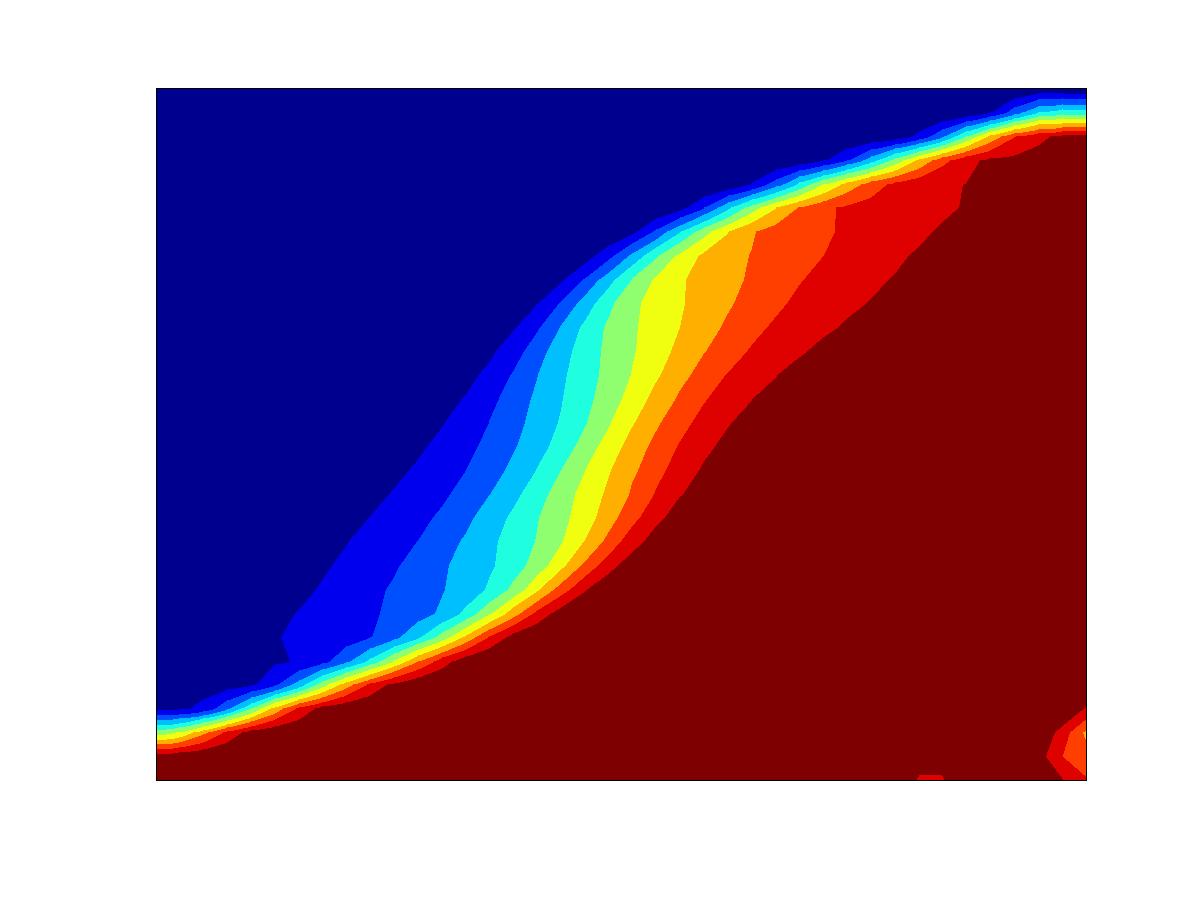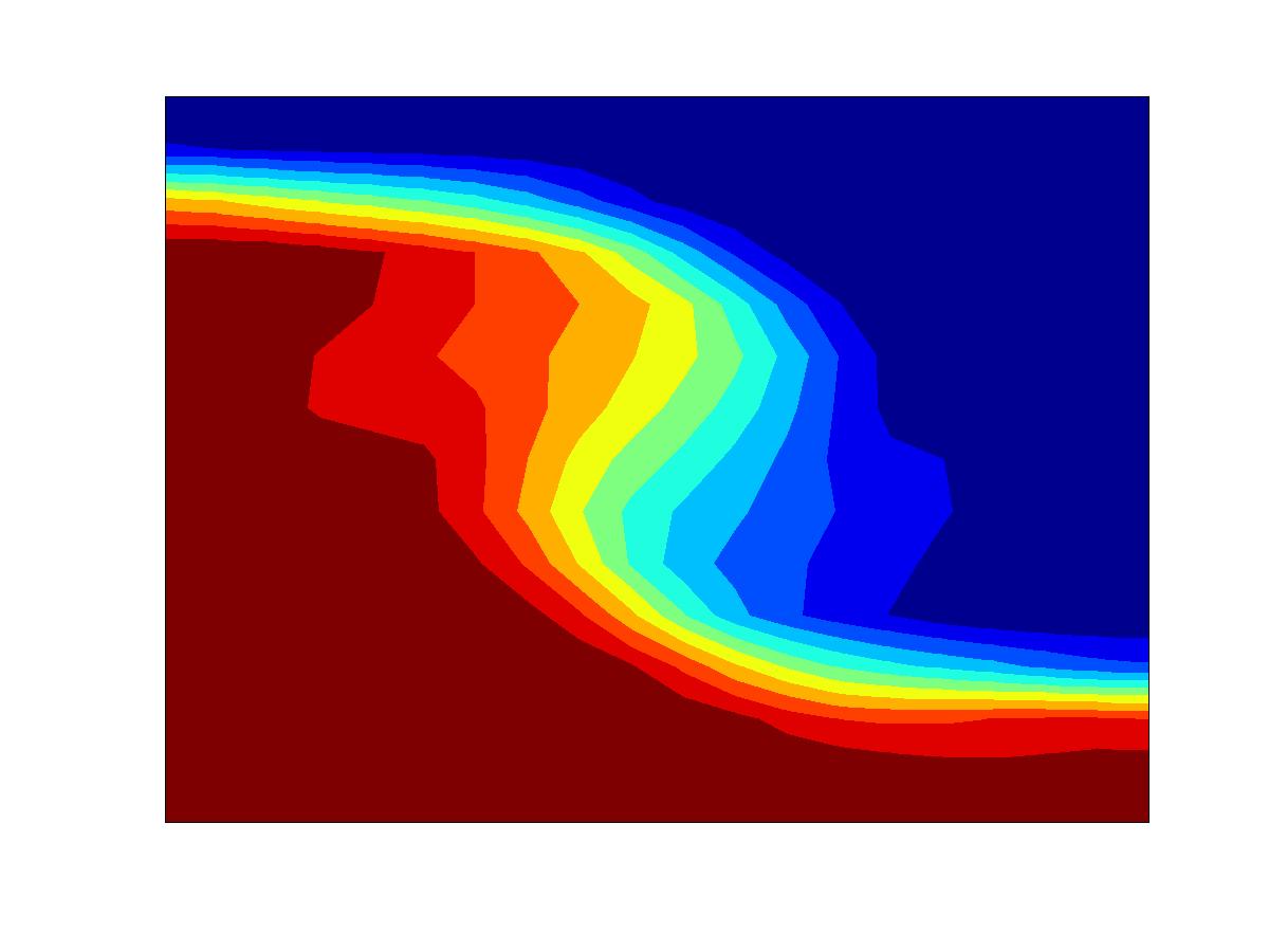 Non-hydrostatic model results for breaking internal wave For a similar set of pictures of a hydrostatic wave model <follow this link> For a similar set of pictures of a non-breaking wave <follow this link> For movies (6 at 500 mb each) matching the figures on this page <follow this link> |
