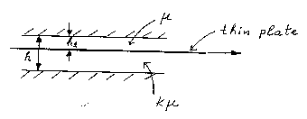 - Sample Problem 2: Through a very narrow gap of height h a thin plate of very large extent is being pulled at constant velocity V. On one side of the plate is oil of viscosity m and on the other side oil of viscosity km. Calculate the position of the plate so that the drag force on it will be a minimum.