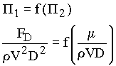 The general functional dependence is not changed by constant factors or by combining or inverting parameters as long as the proper number of independent, dimensionless parameters is maintained. Thus, the original relation P1 = f(P2) can be written as CD = f(Re). The functional relationship originally represented by 5 variables is now totally representated by only two variables.
