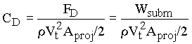 where CD is a drag coefficient. Equating the submerged weight and the