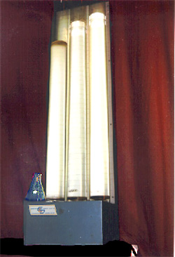 The apparatus consists of three cylindrical tubes, each containing a different liquid. The density and viscosity of each liquid are known. There are also spheres of known diameter and specific weight.