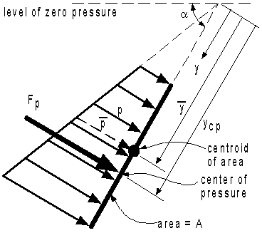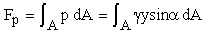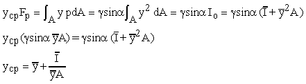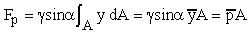 is the pressure at the centroid of the surface. Fp acts at ycp,