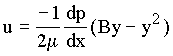 where B = distance between the plates and dp/dx is the gradient of pressure in the flow