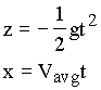 where the coordinate system is as shown in Fig. 1.3, g is the acceleration of gravity, and t is time measured from the beginning of the trajectory. How can these equations for the trajectory be used to estimate Vavg for the tube?