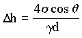 In the demonstration, open tubes with small internal diameters (d) are in colored