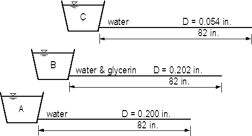diameter of 0.202 in. The third tube for C has an inside diameter of 0.054 in. A and C