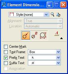 choose Style: (none), choose the Dimension Radius icon