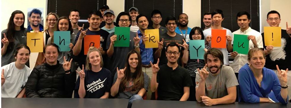Many undergraduate students have worked & are working on research projects under Dr. Kockelman's supervision. These include Aditi Bhaskar, Danny Xie, Clover Chen, Jugal Amodwala, Albert Coleman, Caroline Leonard, James Lentz, Devin Wilkins, Jeffrey Hahm, Mike Hernandez, Tejas Choudhary, Ruohan Li, Lewis Clements, Aqshems Nichols, Scott Schauer-West, Kevin Pappas, Zelleny Lozano, Brad Caponigro, Matt Reiter, Rydell Walthall, Brice Nichols, Jonathan Lumang, Jay Chmilewski, Amy Neskar, Joy Chen, Anne Hulsey, Andrea Debee, Charlotte Whitehead, Matt Bomberg, Melissa Thompson, Robin Lynch, Kristin Donnelly, Travis Dunn, Mike Reyes, Iris Lin, Alexander Marks, Curtis Bouldin, Renee Pean, Daisy Esquivel, Jeff Easton, Victor Long, Atul Magoon, Sze Ki (Silky) Wong, Maizy Jeong, and Eric McDonnell.