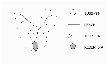 In the geographic data structure used by HEC-PREPRO subbasins, streams, reservoirs and elevations are described as follows.