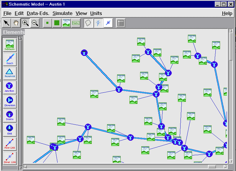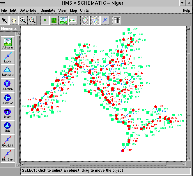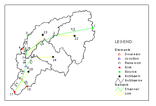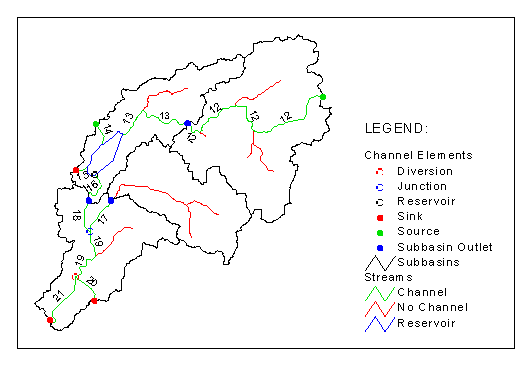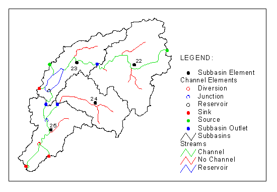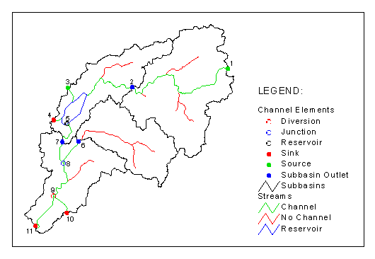 elements are identified. They are: subbasins, sources, reaches, junctions,