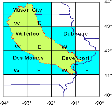 Figure 5.7 Runoff (flow in rivers) that occurred in June 1990 in the Iowa-Cedar River watershed.