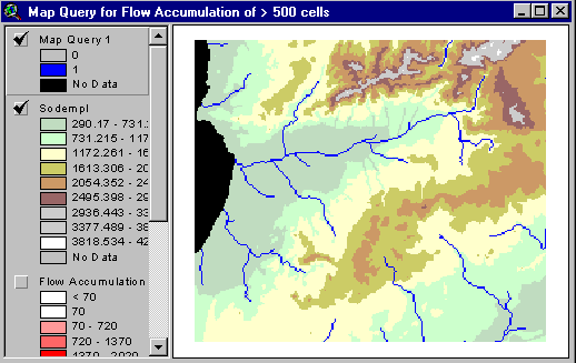 Accumulation, vous verrez que les principaux chemins de drainage sont représentés