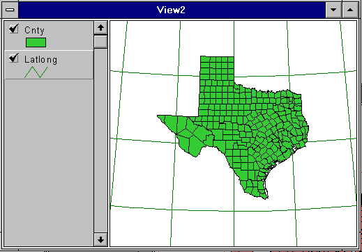Create a new View (View2), add Latlong and Cnty to it, and select the counties in Texas as before.