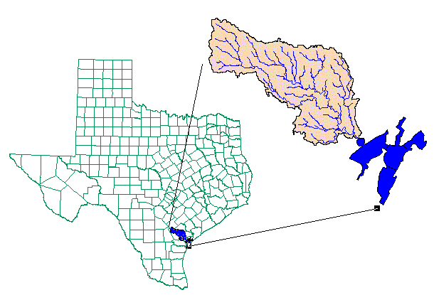 The purpose of this exercise is to show how the Arc/Info GRID system and Arcview 3.0 with Spatial Analyis and the Hydrology Extensions can be used to provide estimates of nonpoint source pollutant loads to a receiving body of water. For this exercise, the receiving water is Copano Bay in South Texas, which the Aransas River, Mission River, and Copano Creek all drain into. These streams are all contained within the San Antonio-Nueces coastal basin, a 7000 sq km basin which is bounded by the San Antonio River and Nueces River basins (hence the name).