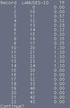 You should see a table with one land use type per record and EMC values for Phosphorus associated with each land use type.