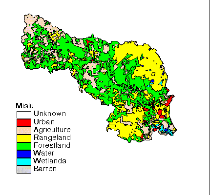 In English, this command says, "join the mislu polygon attribute table (pat) with the corresponding data from the attrib.dat table, creating a new mislu.pat table. Use the lanuses-id field as the item with which to relate the items from the two tables, and add the new data after the lanuses-id field in the mislu attribute table."