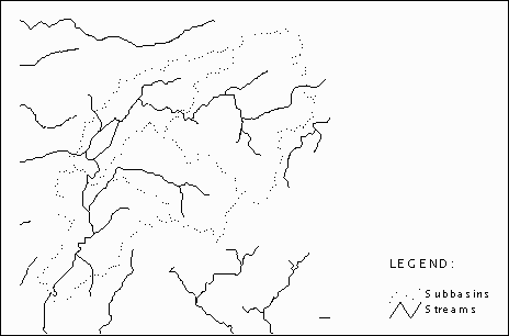 This section defines the geographic data structure in general terms. A more detailed definition is provided in Chapter 3. The description of watershed data with a geographic data structure is not unique. In other words a watershed can be described with a geographic data structure in several different ways. Consider for example the description of streams. Several different ways of defining streams are presented below.