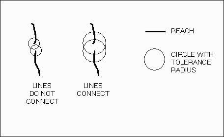 Connectivity among channel elements is established by moving along the channel streams from element to element. During this process multiple stream lines are combined into single reaches, that is, the lines that make up a particular reach are all assigned the same ID number. See Figure 2.6.