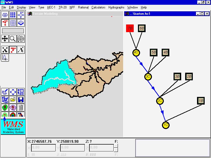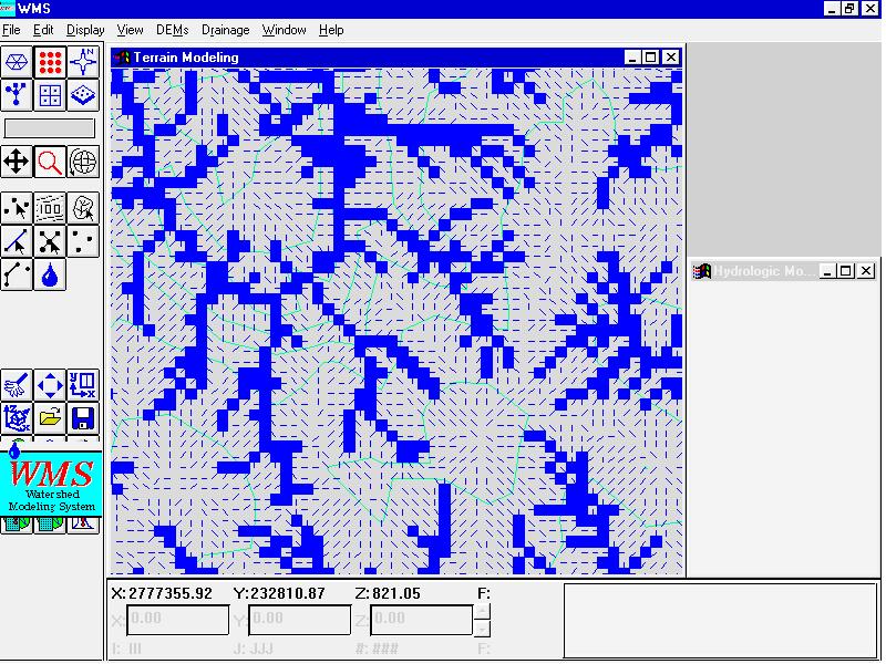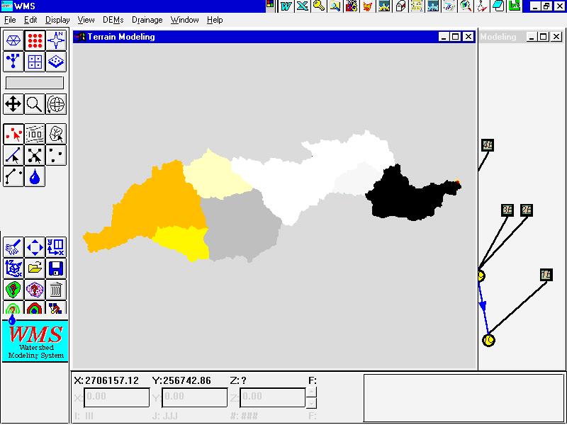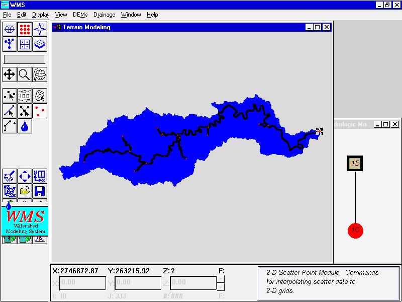 This exercise utilizes Arc/info with the Grid module, and the pc version of WMS beta 5.0. Please note, as of this writing, version 5.0 is not commercially available, and is considered to be in the development and testing stage.
