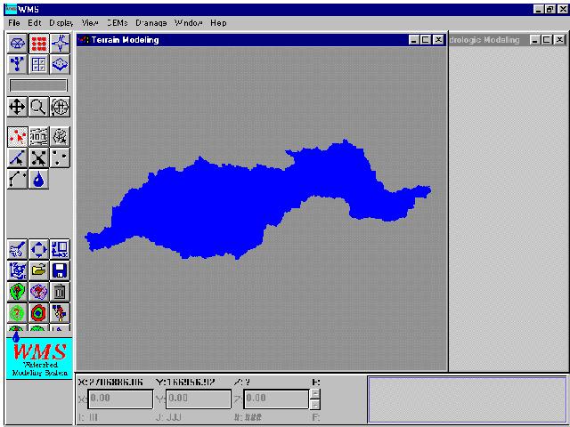 Remember, I'm only demonstrating the functions in WMS that need to be used in order to accomplish the goals of this exercise. WMS contains a comprehensive environment for hydrologic analysis, and is capable of much more than is described here. The steps shown are for the pc platform, but WMS is available for UNIX machines as well. Also, the commands to import grid data are a part of the new version not yet available. The current WMS version can import shape files for use as feature objects in hydrologic analysis.