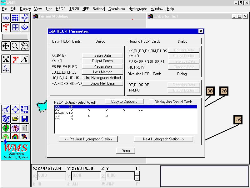 When the first basin is complete, click on the Next Hydrograph Station button, and continue to edit the HEC-1 file.
