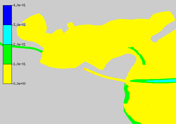 CoriolisThe TxBLEND input data specifies the effective latitude for the basin at 29.6 degrees North. Instabilities were encountered when using this option of TABS. The instabilities were not resolved. Latitude is specified in the boundary conditions file with the LA card. Due to the instabilities the LA card is commented out with the CO card.