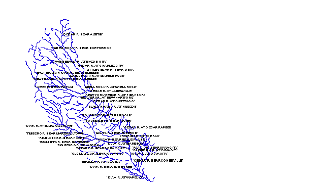 Figure 4.3 The Iowa River with tributaries and the USGS gauging stations.