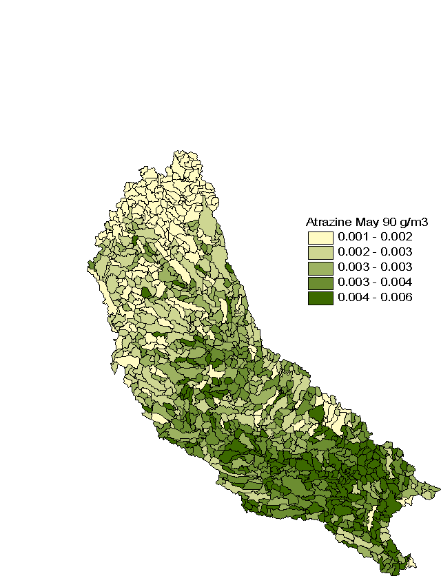 Figure 5.11 Atrazine concentrations in the Cedar River basin estimated for May 1990 -- a map created within the ArcView project "Results"