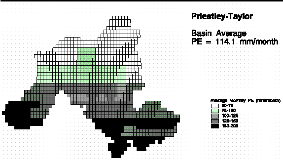 Despite numerous uncertainties associated with simple soil-water budget model like the one used in this study, many researchers have applied this type of model to problems ranging from catchment scale studies to the global water balance and climate change scenerios (Thornthwaite, 1948; Budyko, 1956; Manabe, 1969; Mather, 1978; Alley, 1984; Willmott et al., 1985; Mintz and Walker, 1993; Mintz and Serafini, 1992). The popularity of this approach in hydrologic studies is most likely due to its simplicity. The simple bucket model used here requires minimal input data : precipitation, temperature, net-radiation, and soil-water holding capacity. For catchment scale applications, the soil-water budget approach for predicting runoff has shown reasonable agreement with measured annual flows, but has not shown good agreement with monthly flows (Mather, 1978). Although the soil-water budget roughly accounts for the soil storage effects on the time distribution of surface and sub-surface runoff, it has not demonstrated accurate prediction of monthly flow volumes.