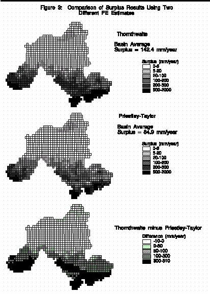 sensitivity of water surplus calculations to two methods of estimating