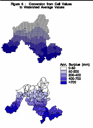 of cell surplus values to watershed average values. Figure 6 illustrates