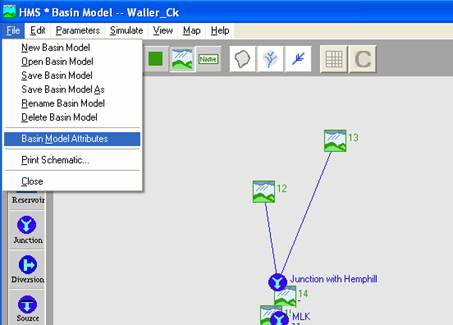 . In the HMS Basin Model window, use File/Basin Model Attributes to select the location where you have stored the HMS.map file and add to the display.