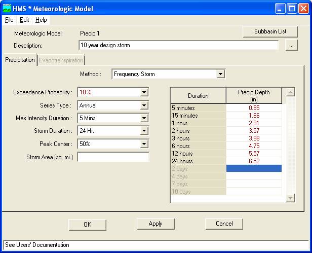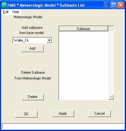 This specifies to what basin the meteorologic data are to be applied. Click OK.